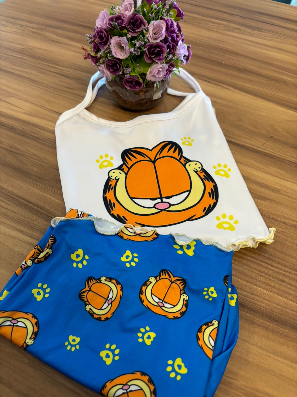 O conjunto é composto por blusa de alcinhas e short estampado, com personagens divertidos e cores vibrantes que encantam o público infantil. O short possui cós elástico, proporcionando ajuste confortável sem apertar, permitindo total liberdade de movimento.