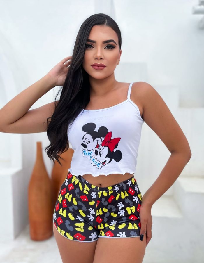 O Baby Doll Virginia é perfeito para noites aconchegantes, confeccionado em suede com estampas de personagens animados.