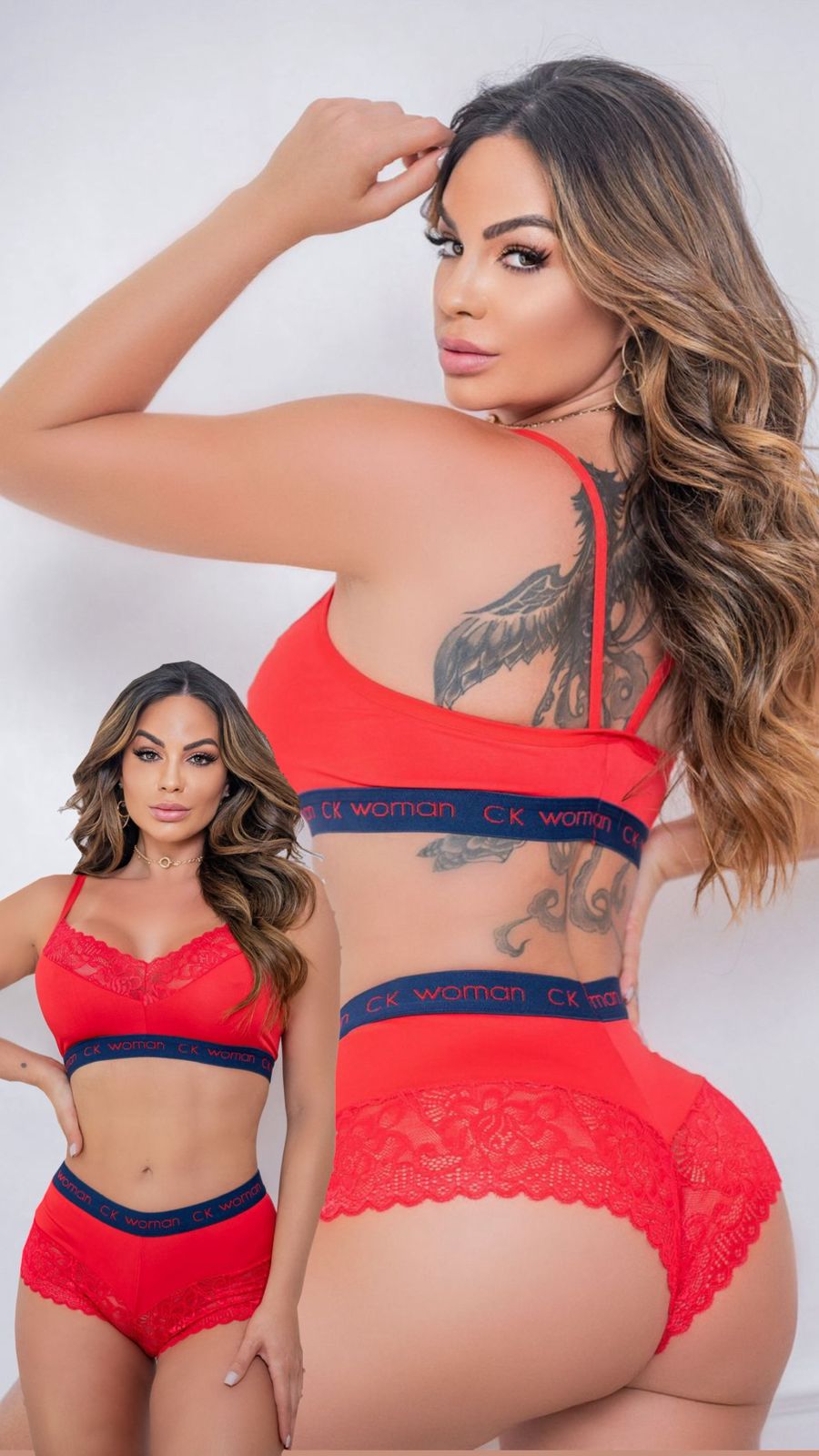 O elástico com identificação “CK Woman” adiciona um toque fashion e contemporâneo à peça, tornando o conjunto perfeito para quem gosta de lingerie estilosa sem abrir mão do conforto.