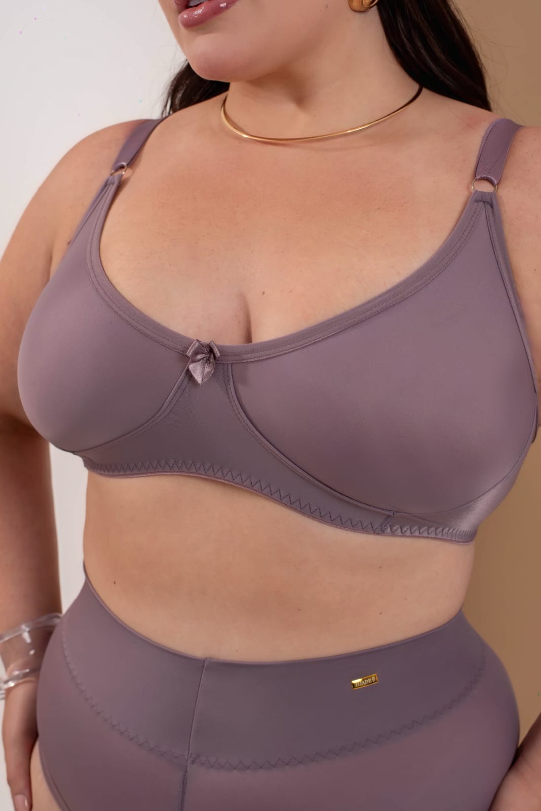 Confeccionado em tecido cetinete de toque macio e sedoso, o sutiã proporciona leveza, respirabilidade e conforto prolongado, ideal para uso diário. O modelo sem bojo garante um caimento mais natural, enquanto as costuras estratégicas ajudam na sustentação, especialmente para seios médios e grandes.